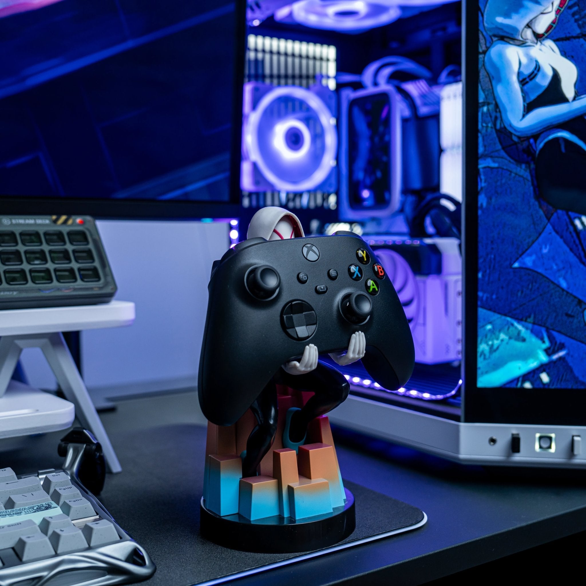From a multiverse not too far away, Gwendolyn Stacey, or Ghost-Spider to you and me, is poised and ready to protect your mobile phone, gaming controllers, and more, from any villains who may want it for themselves. Straight from Marvel’s Ghost-Spider comics, she has travelled through space and time from Earth-65, bringing her brains and brawn to your setup.